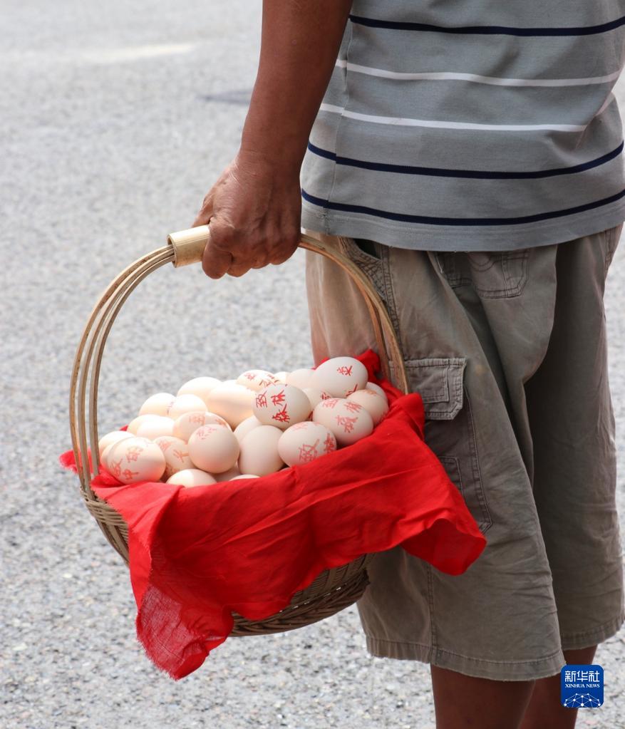 8月27日,在重慶市璧山區,村民提著(zhù)一籃煮雞蛋等候即將離開(kāi)的森林消防隊員。
