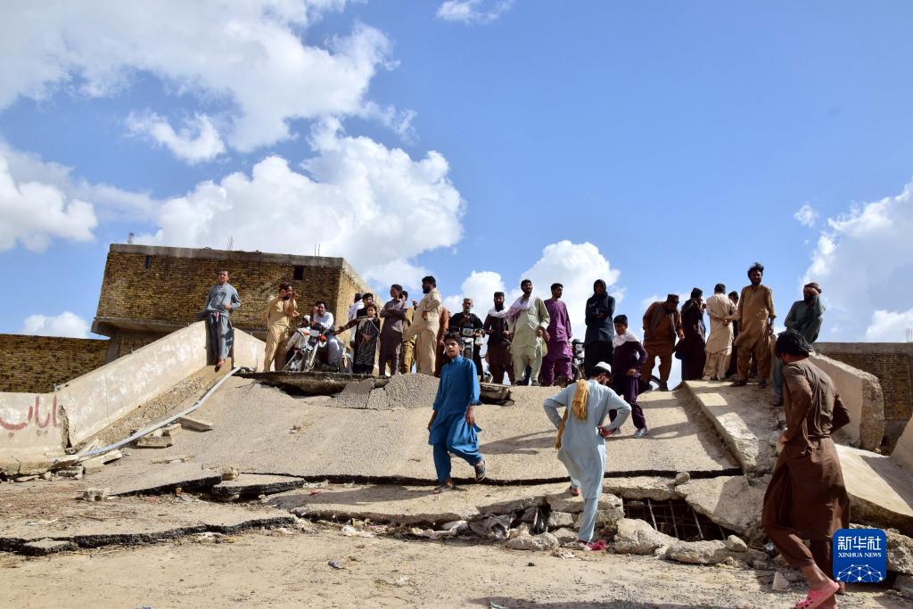 這是8月27日在巴基斯坦奎達拍攝的被洪水損毀的道路。