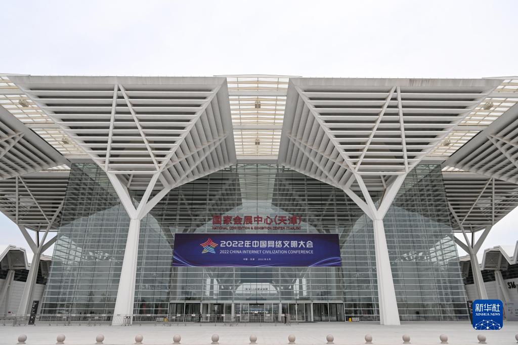 8月28日在國家會(huì )展中心(天津)拍攝的2022年中國網(wǎng)絡(luò )文明大會(huì )現場(chǎng)外景。