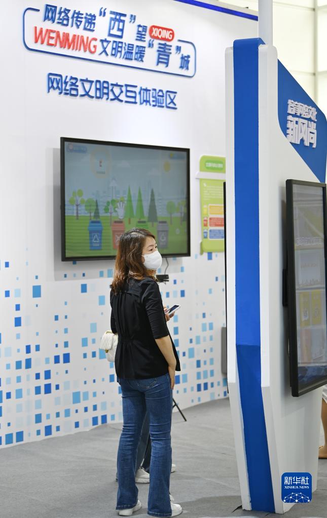 8月28日,在國家會(huì )展中心(天津),參會(huì )者在2022年中國網(wǎng)絡(luò )文明大會(huì )現場(chǎng)參觀(guān)展覽。
