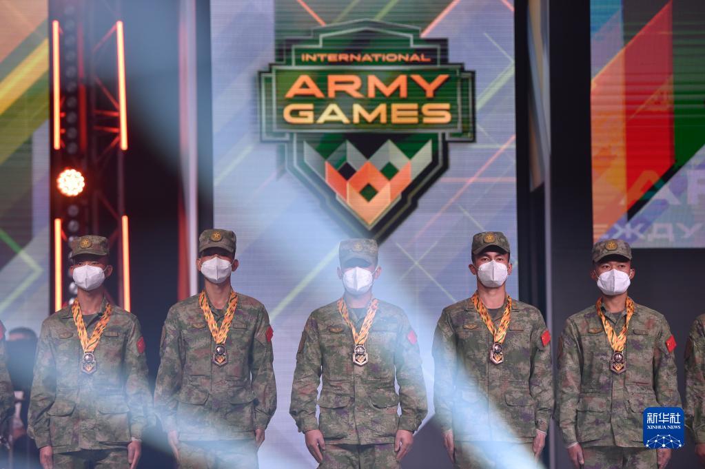 8月27日,中國參賽隊隊員在俄羅斯莫斯科州愛(ài)國者公園領(lǐng)獎。