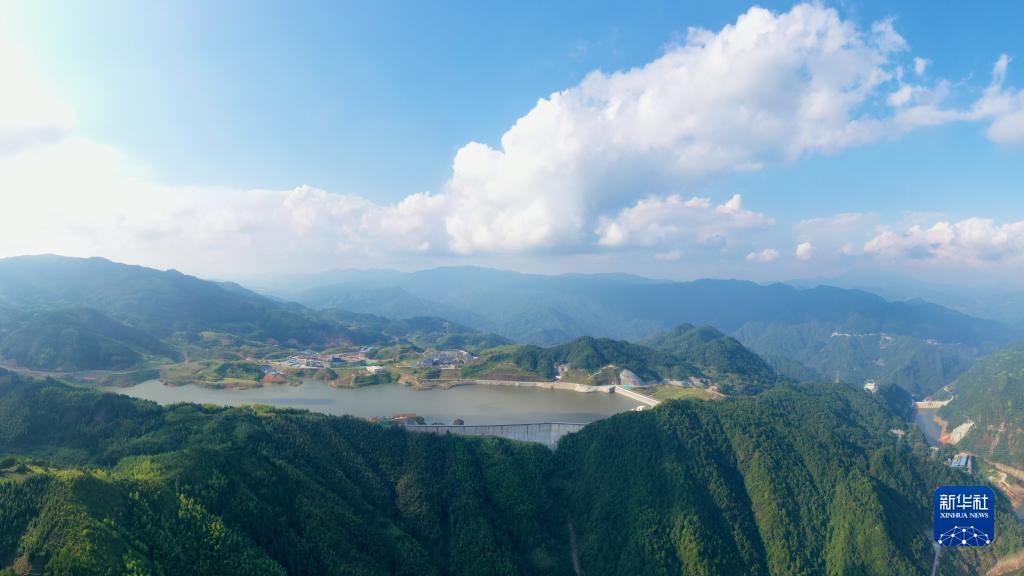 8月28日拍攝的福建周寧抽水蓄能電站上水庫(左)、下水庫(右),輸水系統和地下廠(chǎng)房位于兩個(gè)水庫中間的山體內部(無(wú)人機照片)。