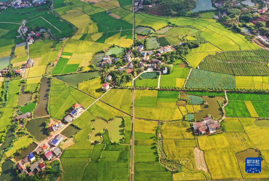 8月28日,在湖南省衡陽(yáng)市衡陽(yáng)縣臺源鎮臺九村拍攝的田園景色(無(wú)人機照片)。