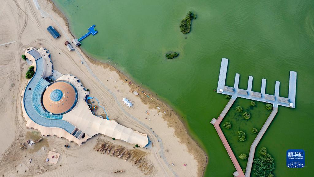 這是8月28日拍攝的寧夏沙湖景區(無(wú)人機照片)。