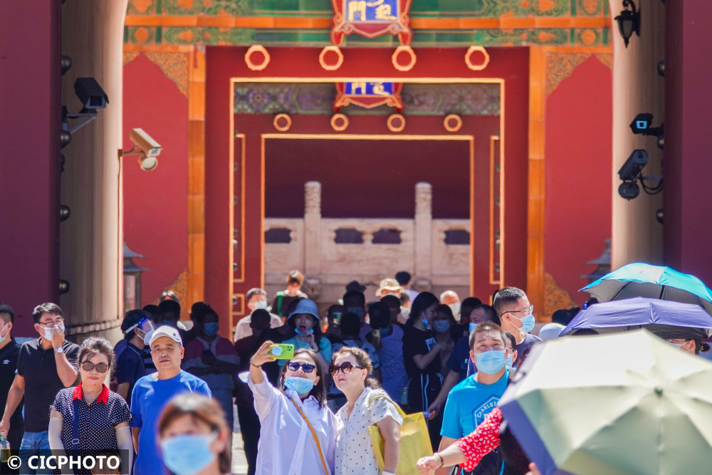 ↑2022年8月27日,游客在北京故宮博物院內參觀(guān)游覽。CICPHOTO/呂昊俊 攝