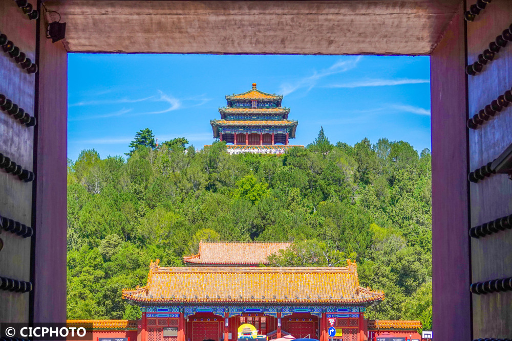 ↑2022年8月27日在北京故宮博物院神武門(mén)拍攝的景山一角。CICPHOTO/呂昊俊 攝