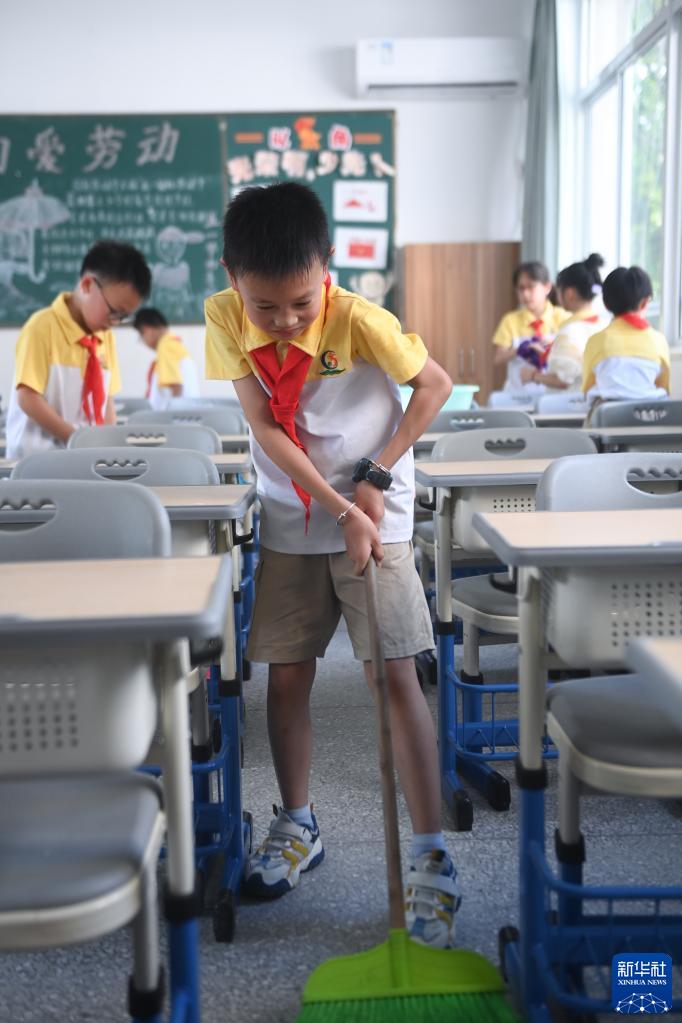 8月29日,龍泉小學(xué)的學(xué)生在打掃教室,開(kāi)啟新學(xué)期“開(kāi)學(xué)第一課”。