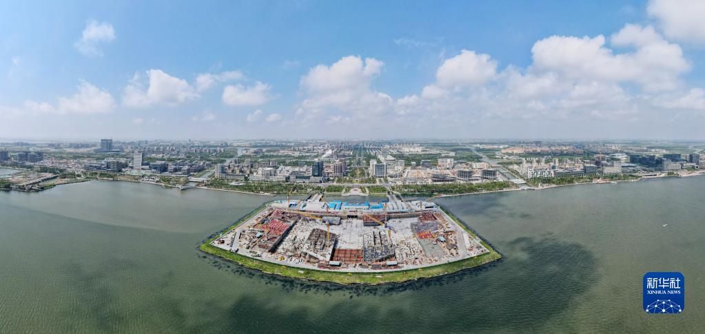 8月29日,空中俯瞰臨港西島金融中心項目工地(無(wú)人機照片)。
