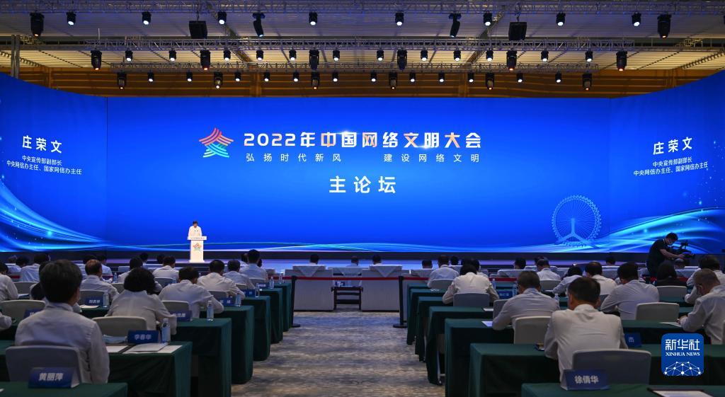 這是8月28日在國家會(huì )展中心(天津)拍攝的2022年中國網(wǎng)絡(luò )文明大會(huì )主論壇現場(chǎng)。