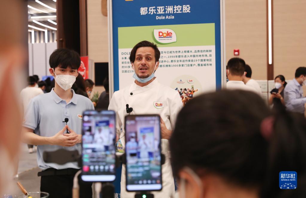 8月30日,一名來(lái)自法國的美食主播在對接會(huì )現場(chǎng)直播美食制作。