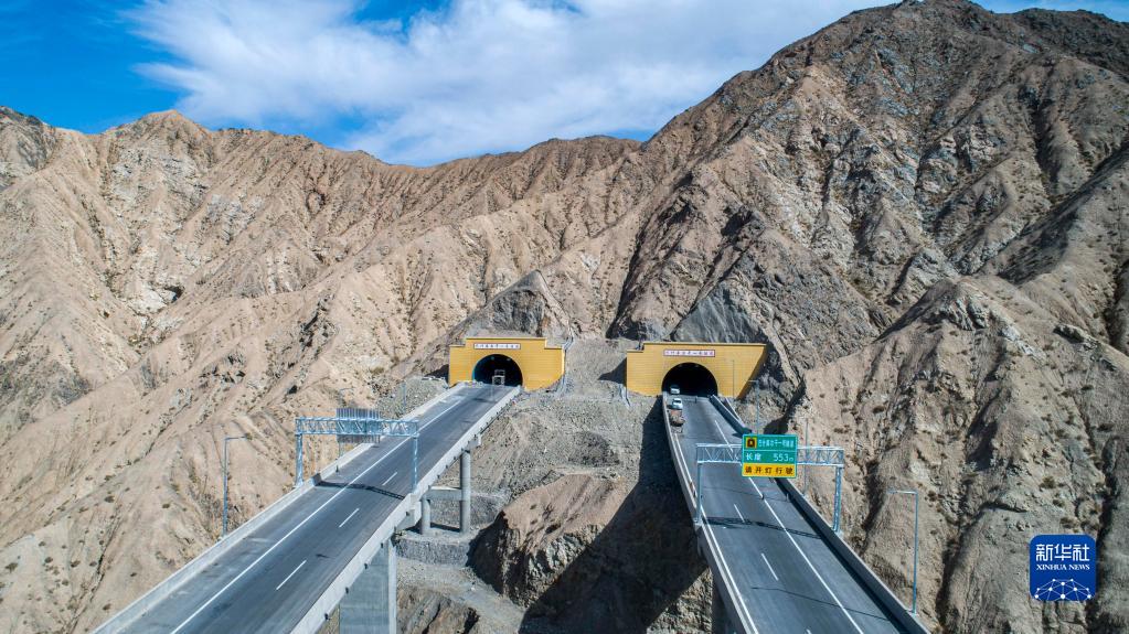 依若高速公路巴什庫爾干一號隧道(6月11日攝,無(wú)人機照片)。