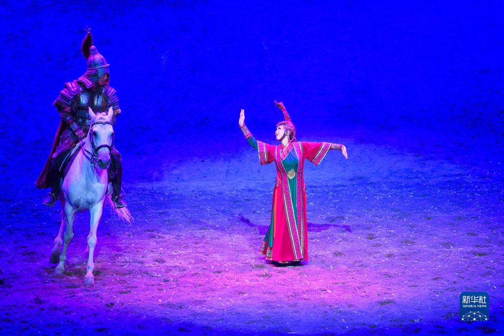 當日,由內蒙古藝術(shù)劇院出品的大型馬舞劇《千古馬頌》在呼和浩特上演。該劇以民族馬術(shù)、馬背雜技、舞馬表演、蒙古族歌舞樂(lè )等藝術(shù)元素為主要表現形式,融合了現代高科技舞臺技術(shù),體現了人與馬、自然和諧共存的精神。