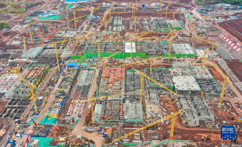 這是8月31日拍攝的重慶東站樞紐新城項目施工作業(yè)現場(chǎng)(無(wú)人機照片)。