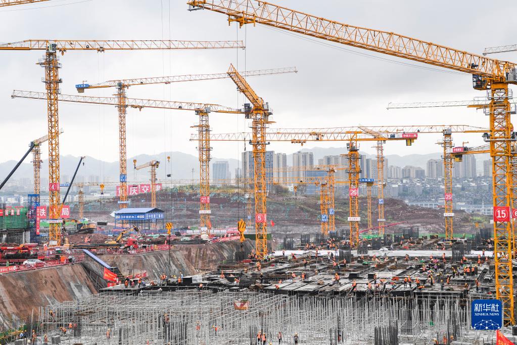 8月31日,工人在重慶東站樞紐新城項目施工作業(yè)。
