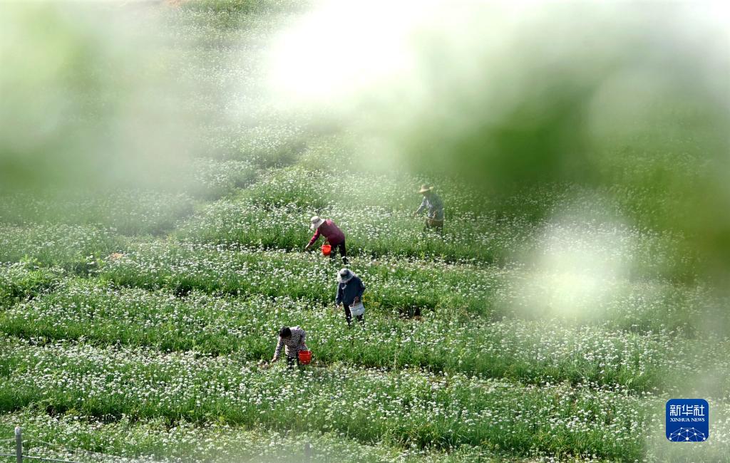 初秋時(shí)節,山東省沂源縣農民種植的近萬(wàn)畝韭菜迎來(lái)開(kāi)花期。當地農民加緊采摘,田間地頭一派忙碌。該地的韭菜花作為制作韭花醬、韭花醬菜的原料遠銷(xiāo)各地,是當地農民秋季增收的特色產(chǎn)業(yè)之一。
