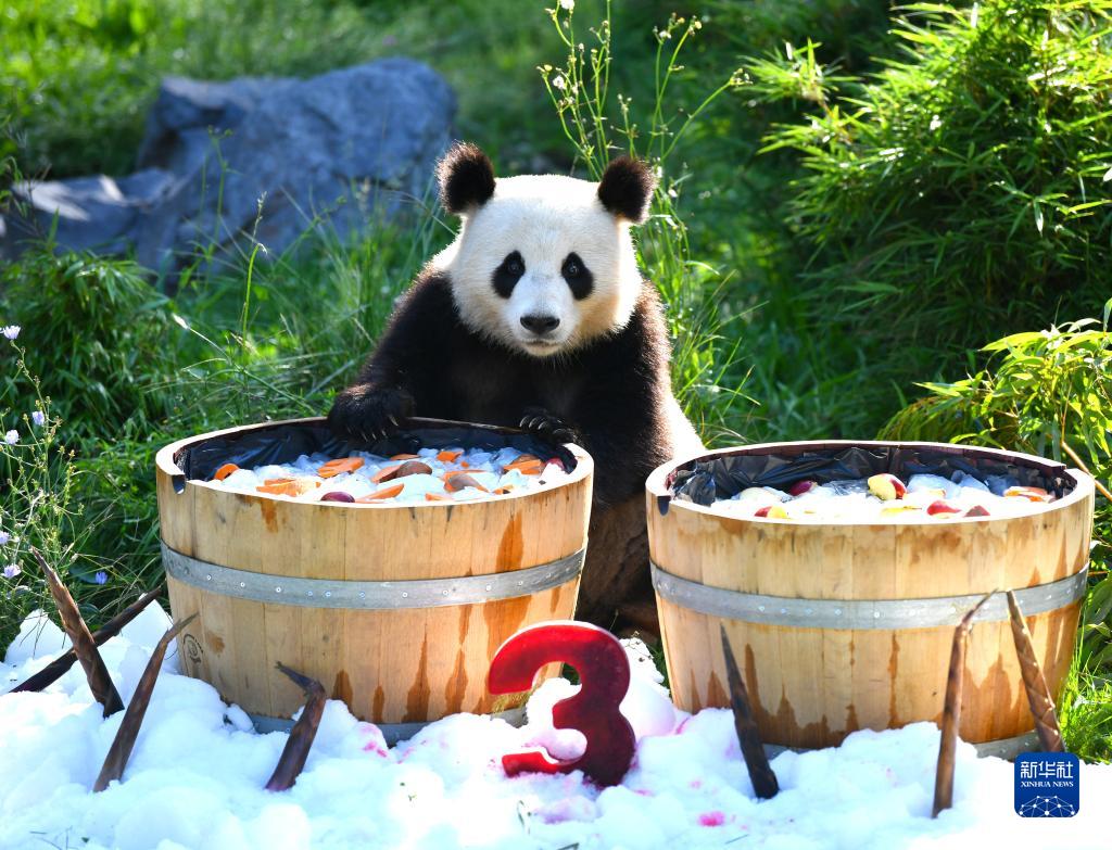 在德國出生的大熊貓雙胞胎兄弟“夢(mèng)想”和“夢(mèng)圓”8月31日在柏林動(dòng)物園迎來(lái)3歲生日。