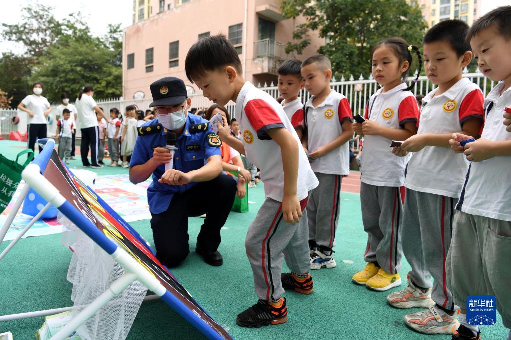 9月1日,安徽省合肥市包河區常青街道淝南社區淝南家園幼兒園小朋友在開(kāi)學(xué)第一課上參與垃圾分類(lèi)環(huán)保小游戲。