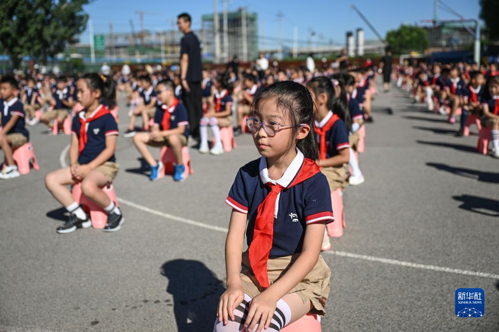 9月1日,在北京市中關(guān)村外國語(yǔ)學(xué)校小學(xué)部,同學(xué)們參加開(kāi)學(xué)典禮。