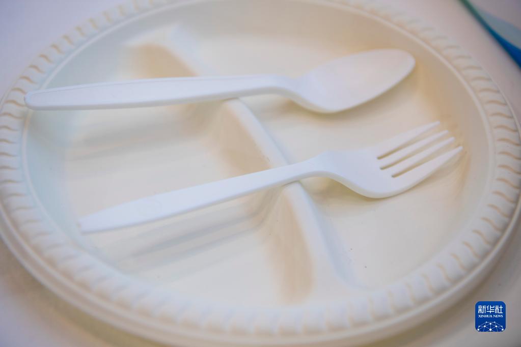 這是9月1日在博覽會(huì )現場(chǎng)拍攝的全生物降解一次性餐具。