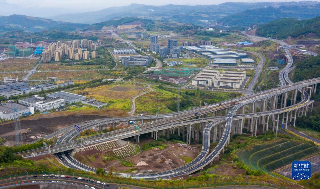 9月1日拍攝的萬(wàn)州環(huán)線(xiàn)高速公路鹿山互通(無(wú)人機照片)。