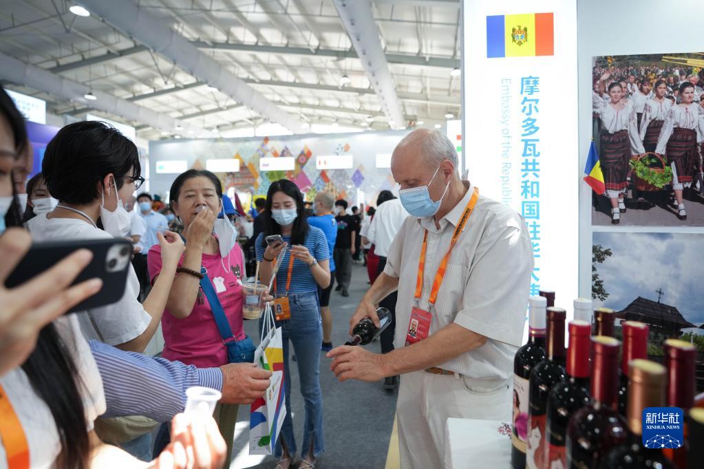 9月1日,觀(guān)眾在2022年服貿會(huì )首鋼園區的摩爾多瓦共和國展位品嘗紅酒。