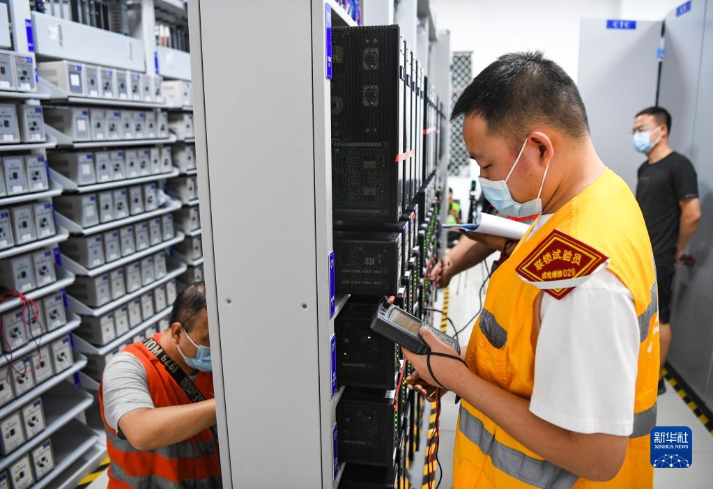 9月1日凌晨,施工人員在重慶鐵路樞紐東環(huán)線(xiàn)磨心坡站信號機械室內作業(yè)。新華社記者 王全超 攝
