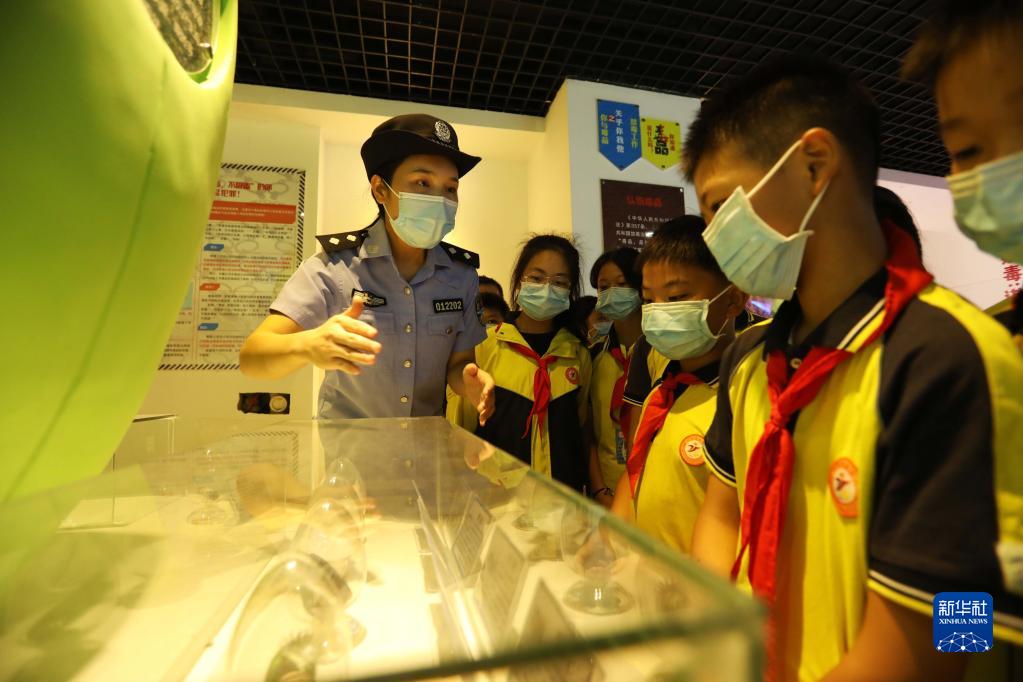 9月1日,在貴州省赤水市天臺學(xué)校,民警給學(xué)生講解新型毒品相關(guān)知識。