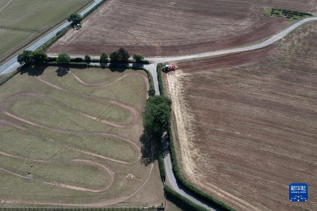 這是8月31日在英國斯塔福德郡拍攝的受干旱影響的農田(無(wú)人機拍攝)。