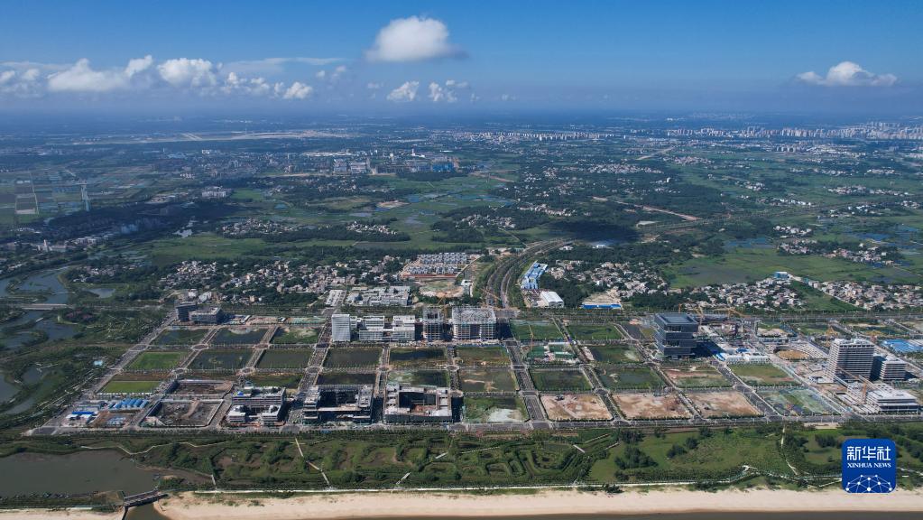 9月1日拍攝的建設中的??诮瓥|新區(無(wú)人機照片)。