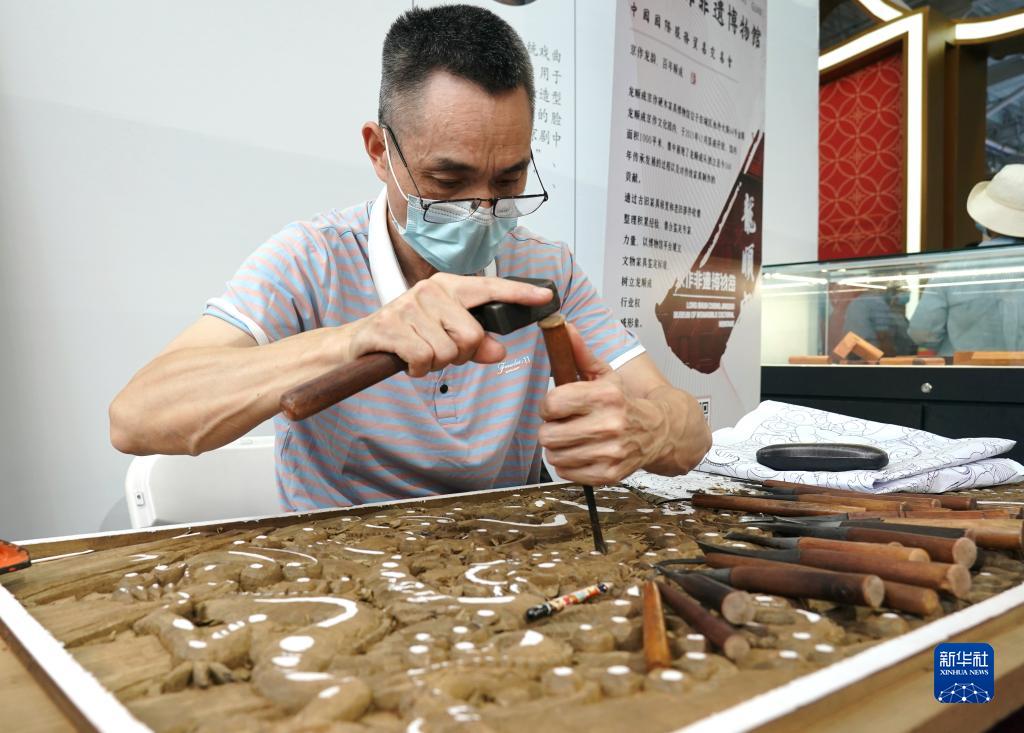 9月2日,參展者在服貿會(huì )文旅服務(wù)專(zhuān)題展區展示手工木雕技藝。新華社記者 張晨霖 攝