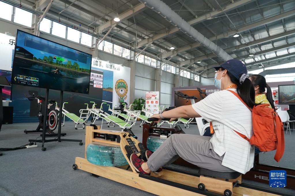 9月2日,在服貿會(huì )體育服務(wù)專(zhuān)題展區,觀(guān)眾體驗劃船機。新華社記者 任超 攝