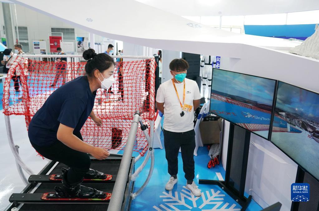這是9月2日在體育服務(wù)專(zhuān)題展區內拍攝的一款模擬滑雪設備。
