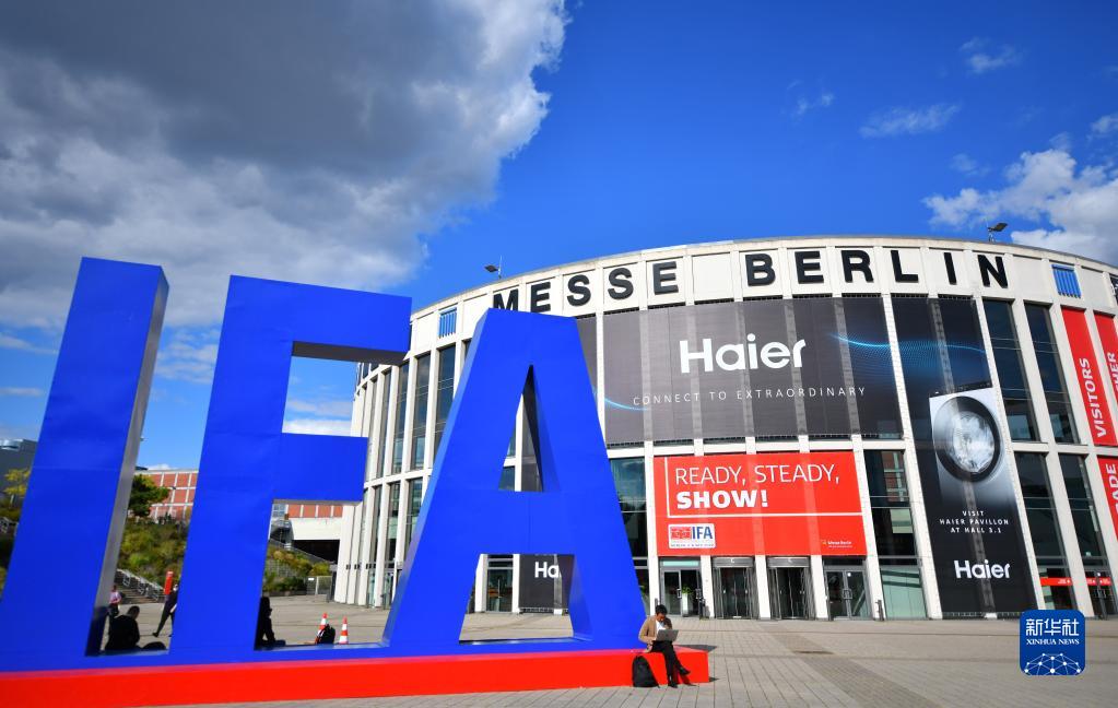 這是9月2日在德國柏林拍攝的柏林國際消費電子展展館入口。