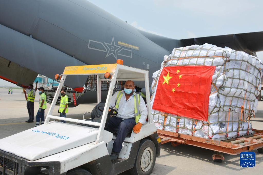 8月30日,在巴基斯坦南部城市卡拉奇,工人搬運中國援巴抗洪救災人道主義物資。