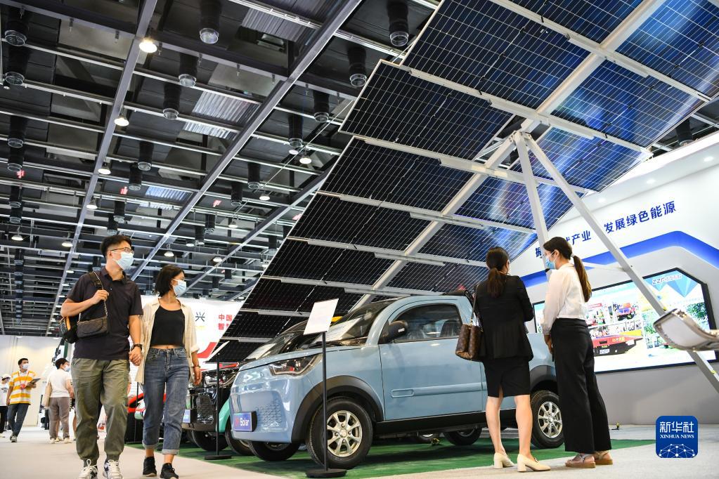 9月3日,在環(huán)境服務(wù)專(zhuān)題展區,觀(guān)眾參觀(guān)太陽(yáng)能車(chē)。