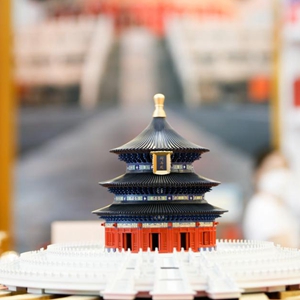 9月1日在2022年中國國際服務(wù)貿易交易會(huì )文旅服務(wù)專(zhuān)題展區拍攝的天壇祈年殿模型。