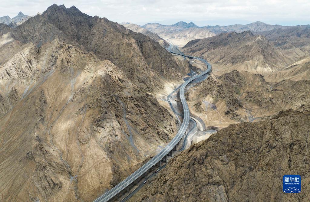 依若高速公路蜿蜒穿越新疆若羌縣山區(8月6日攝,無(wú)人機照片)。8月30日,依吞布拉克至若羌高速公路(簡(jiǎn)稱(chēng)依若高速)建成通車(chē),成為繼G7和G30之后進(jìn)出新疆的第三條高速公路。
