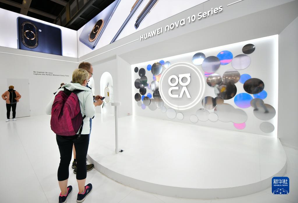 9月2日,在德國柏林國際消費電子展上,參觀(guān)者在華為展區了解產(chǎn)品。
