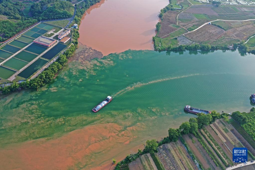 三江口地處廣西南寧市江南區江西鎮,左江與右江在這里匯合后成為邕江。受近日上游降雨影響,左江江水渾濁發(fā)黃,渾黃的左江水與清澈的右江水在三江口水域交匯。