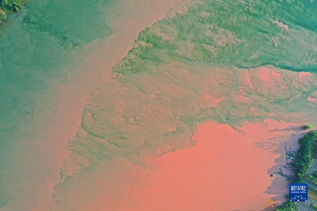 廣西南寧市江南區江西鎮三江口水域,左江與右江水在交匯處清濁交融(9月3日攝,無(wú)人機照片)。
