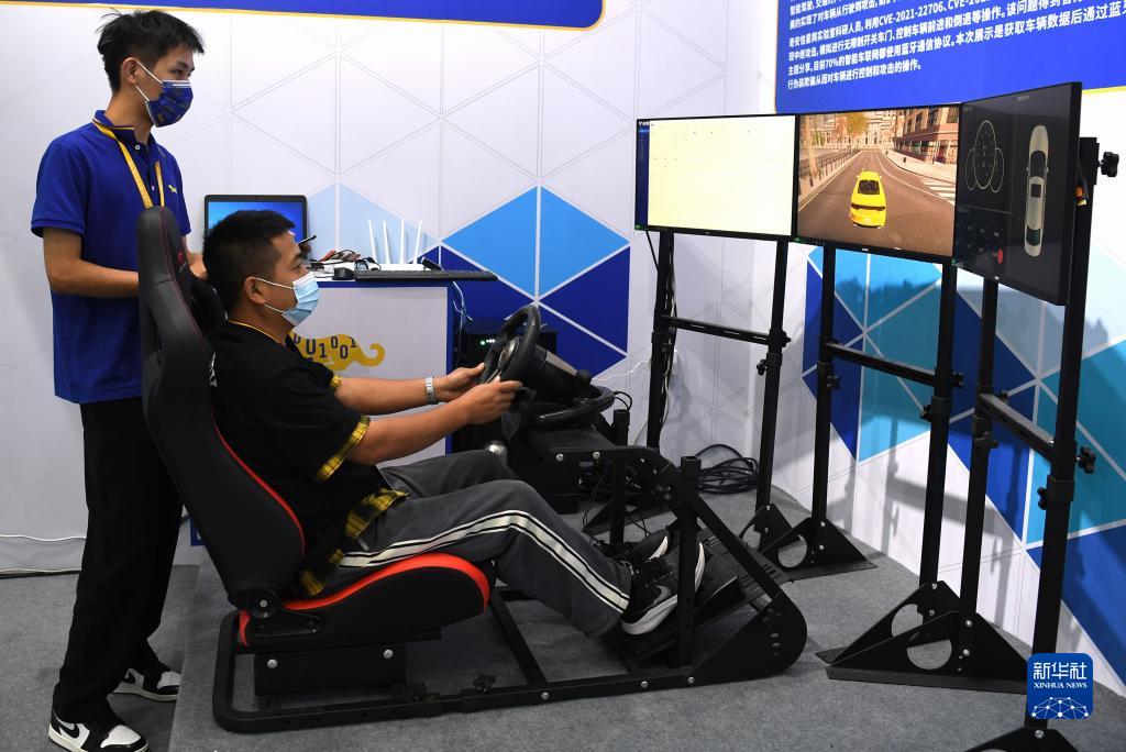9月4日,一家參展企業(yè)代表在演示使用車(chē)載網(wǎng)絡(luò )安全科技產(chǎn)品。