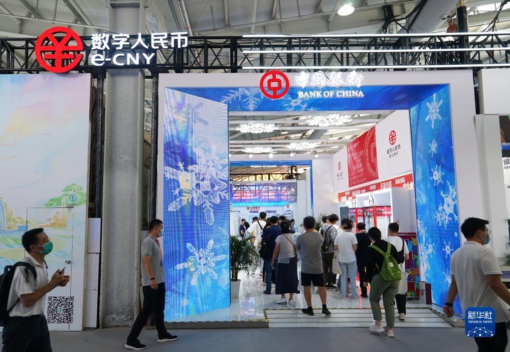 9月4日,在服貿會(huì )首鋼園區金融服務(wù)專(zhuān)題展上,參觀(guān)者排隊體驗中國銀行數字人民幣應用場(chǎng)景。 新華社記者 金皓原 攝