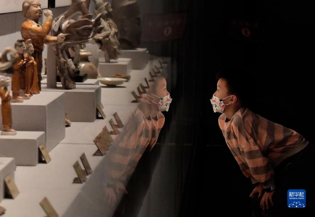 9月4日,一名小朋友在“文明的淵藪——河南百年百大考古發(fā)現展”上觀(guān)看展品。