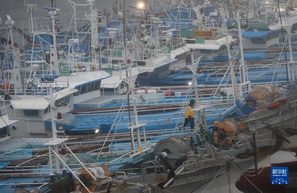 這是9月5日在韓國濟州島拍攝的港口停泊船只。