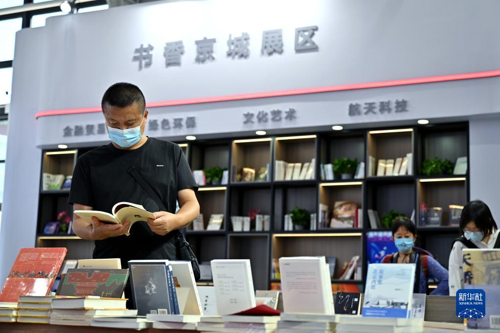 9月5日,在服貿會(huì )文旅服務(wù)專(zhuān)題展書(shū)香京城展區,參觀(guān)者閱覽圖書(shū)。