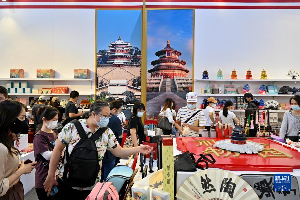 9月5日,觀(guān)眾在服貿會(huì )文旅服務(wù)專(zhuān)題展公園禮物展臺參觀(guān)。