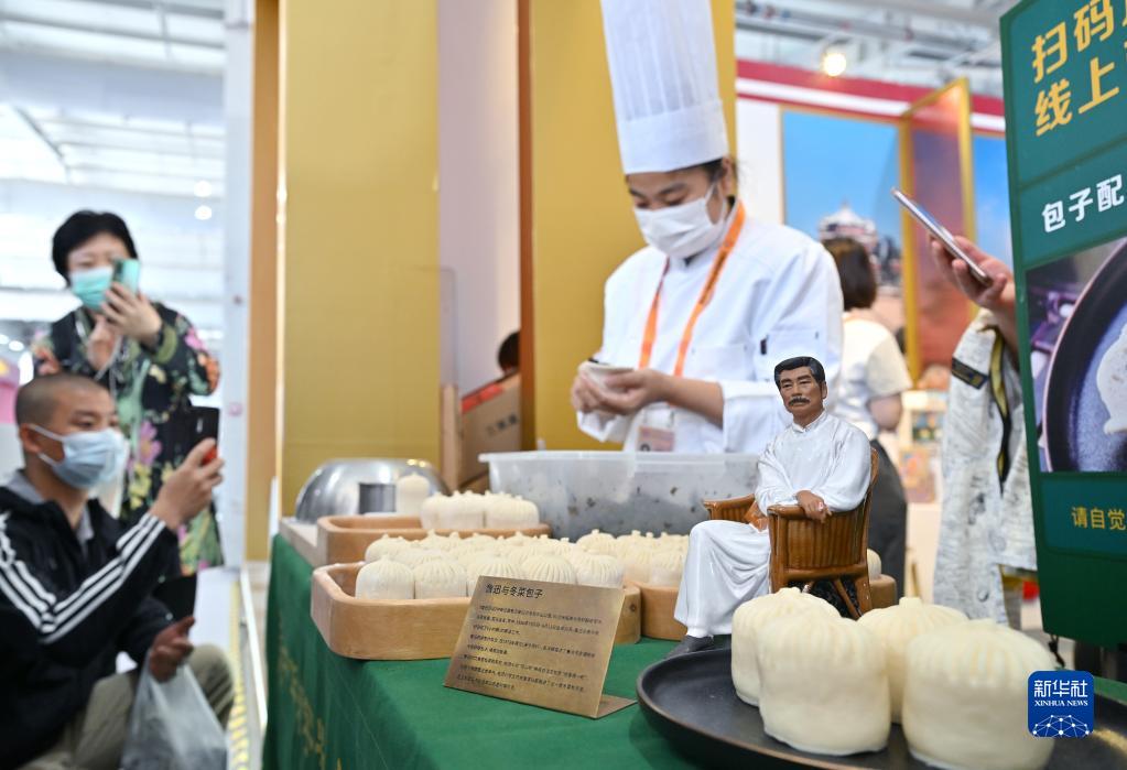9月5日,在服貿會(huì )文旅服務(wù)專(zhuān)題展公園禮物展臺,北京中山公園來(lái)今雨軒的廚師現場(chǎng)制作冬菜包子。