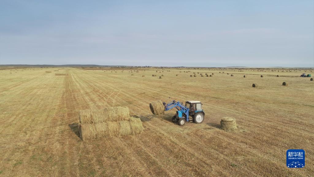 哈薩克斯坦北部地區9月進(jìn)入牧草集中收割的季節,成片的牧草被牧民收割、曬干并捆成草垛,以備牲畜在冬季食用。新華社發(fā)(奧斯帕諾夫攝)