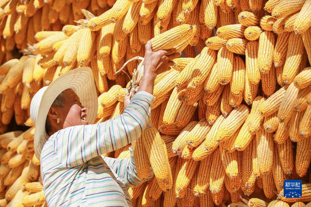 秋日里,各地農民搶抓農時(shí)收獲、晾曬農作物,到處是一派豐收的景象。