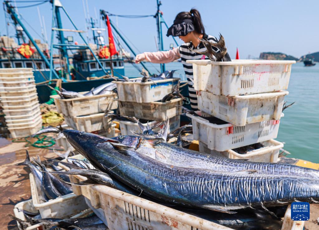 近日,山東省榮成市各大漁港碼頭一派繁忙,秋捕歸來(lái)的漁船紛紛靠港卸魚(yú),新鮮的漁獲吸引魚(yú)販、市民前來(lái)采購。